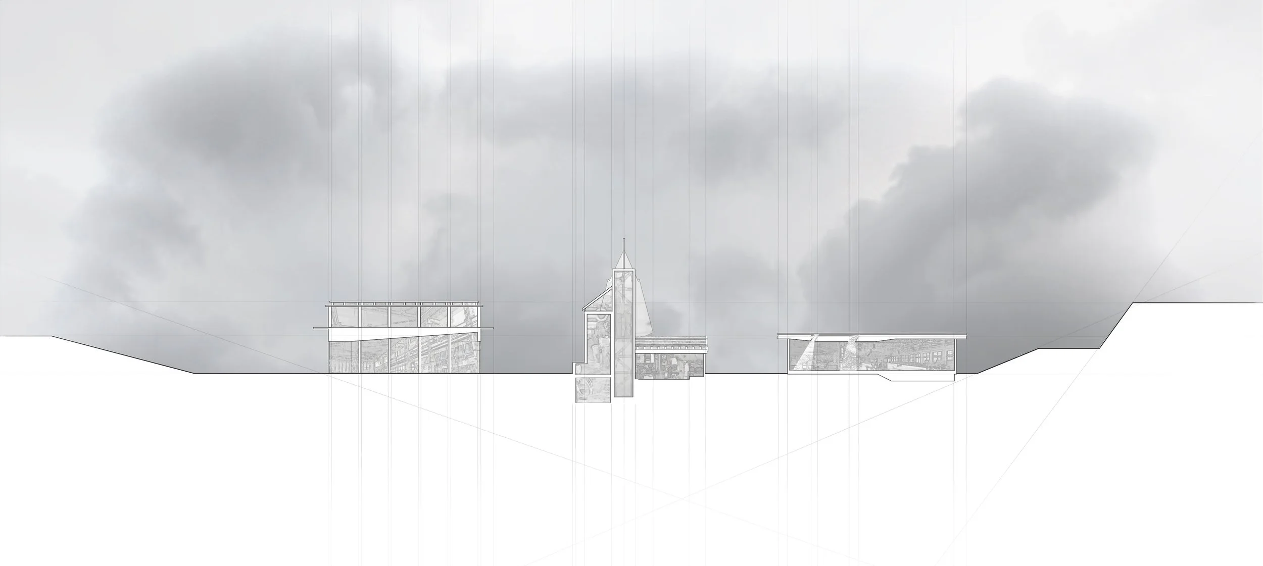 On site, there is an agglomerate of old boat parts that have been reinvented into a terrestrial home. The site is full of instances like this, where old materials have been reimagined as something new. This method of construction greatly influenced this project as it took on a modular system, superimposing sections of the overall structure into an existing ground plane.